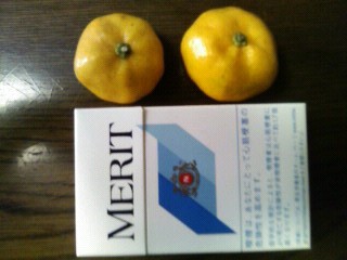 ところで、先週母が遊びに来た際、お土産にふくれみかんを持ってきてくれまして、 「うわあああああい!」って感じでした。 ご存知ですかね?無理か・・・。直径2~3センチのみかんで、普通のみかんより酸味が強くて香りがすごく いい。皮は干して七味の材料にしたりするそうです。 ここいらでも珍しいほうでたまにスーパーでも見ますが、確実に入手するには直売所に行かないと・・・。 それも結構限られた期間なんで去年は食べ損ねました。 まあ、美味しいか、って聞かれたら「人によっては」ってものですが、雅はなぜかこれが好きで。 これを食べると「ああ、秋が終わる」って気がするのです。 なんとか写真に撮れたので貼ってみる。